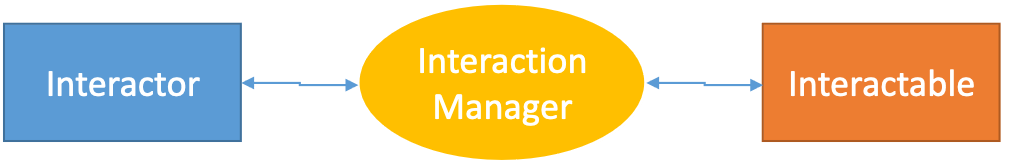 - XR Interaction Manager: takes care of communication between interactors and interactables.